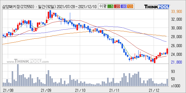 삼양패키징의 2020년 매출액은 3676억으로 전년대비 -2.1% 하락했고, 영업이익은 523억으로 전년대비 25.7% 상승했다. 이 회사의 매출액 증감률과 영업이익 증감률은 각각 코스피 상위 48%, 상위 35%에 해당된다.