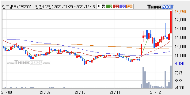 인포뱅크는 2020년 매출액 1196억원과 영업이익 6억원을 기록했다. 전년대비 매출은 0.1% 상승했고, 영업이익은 -25.3% 하락했다. 이 회사의 매출액 증감률과 영업이익 증감률은 각각 코스닥 하위 50%, 하위 39%에 해당된다.