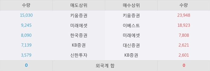 이 시각 주요 거래원은 미래에셋, 키움증권, 이베스트 등이 매수 상위 창구에 자리하고 있다.