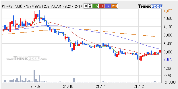 켐온의 2020년 매출액은 전년대비 18.5% 늘어난 248억원이고, 영업이익 또한 전년대비 28.6% 늘어난 24억원을 기록했다. 이 회사의 매출액 증감률과 영업이익 증감률은 각각 코스닥 상위 24%, 상위 37%에 해당된다.