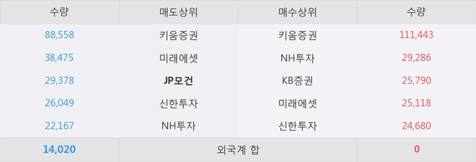 거래원 동향은 NH투자, 미래에셋 등이 매수 상위 목록에 나타나고 있다. 한편, 매도 창구 상위에는 JP모건이 눈에 띄고 있다.