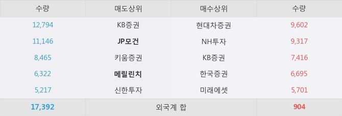 현재 거래원 동향을 보면 JP모건과 메릴린치가 각각 순매도 상위 창구 2위와 4위를 기록하고 있다.