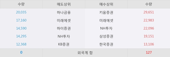 거래원 동향은 하나금융, 미래에셋, NH투자 등이 매도 상위 목록에 나타나고 있다.