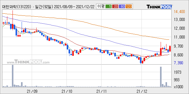 대한과학의 2020년 매출액은 전년대비 11.5% 늘어난 615억원이고, 영업이익 또한 전년대비 63.6% 늘어난 36억원을 기록했다. 이 회사의 매출액 증감률과 영업이익 증감률은 각각 코스닥 상위 33%, 상위 25%에 해당된다.