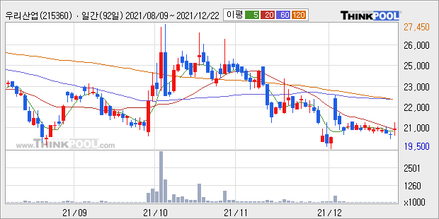 우리산업의 2020년 매출액은 전년대비 -9.3% 줄어든 2890억원이고, 영업이익 역시 전년대비 -26.8% 줄어든 103억원을 기록했다. 이 회사의 매출액 증감률과 영업이익 증감률은 각각 코스닥 하위 32%, 하위 38%에 해당된다.