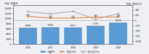 최근 실적을 살펴보면 2020년 매출액이 최근 5년 중 가장 높은 실적을 기록했음을 알 수 있다. 이전 최고 실적이었던 2019년 보다도 16.4%(1189억 6천만원) 늘어난 것으로 나타났다.