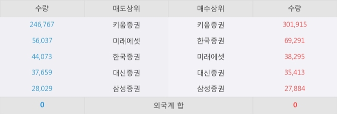아직까지 외국계 증권사 창구를 통한 매매는 발생하지 않고 있다. 그리고 이 시간 한국증권이 매수창구상위에 올라있는 종목은 이 종목 이외에도 인트론바이오, BGF 등이 있다.