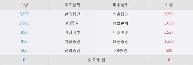 아직까지 외국계 증권사 창구를 통한 매매는 발생하지 않고 있다. 그리고 이 시간 메릴린치가 매수창구상위에 올라있는 종목은 이 종목 이외에도 SNT모티브, DL 등이 있다.
