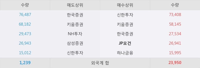 거래원 동향은 JP모건, 하나금융이 매수 상위 목록에 나타나고 있다.