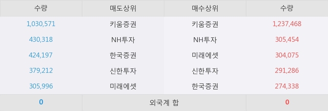 거래원 동향은 NH투자, 미래에셋 등이 매수 상위 목록에 나타나고 있다.