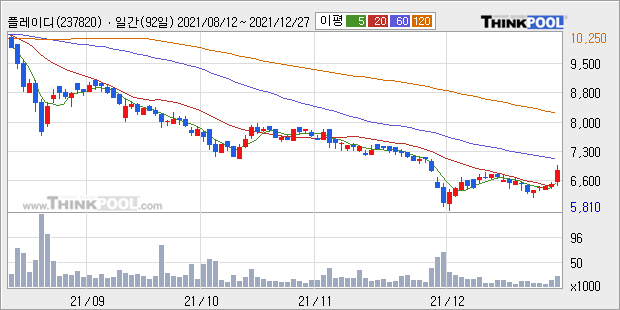 플레이디의 2020년 매출액은 전년대비 -24.0% 줄어든 293억원이고, 영업이익 역시 전년대비 -87.5% 줄어든 11억원을 기록했다. 이 회사의 매출액 증감률과 영업이익 증감률은 각각 코스닥 하위 16%, 하위 21%에 해당된다.