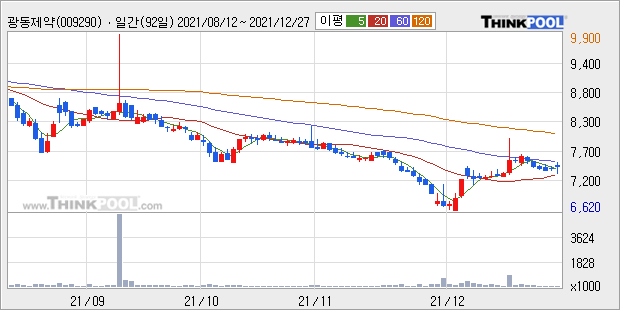 광동제약의 2020년 매출액은 전년대비 0.4% 늘어난 1조 2438억원이고, 영업이익 또한 전년대비 11.5% 늘어난 466억원을 기록했다. 이 회사의 매출액 증감률과 영업이익 증감률은 각각 코스피 상위 42%, 상위 44%에 해당된다.