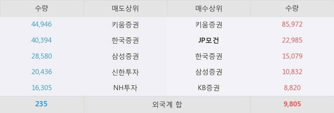 거래원 동향은 JP모건, 삼성증권이 매수 상위 목록에 나타나고 있다.