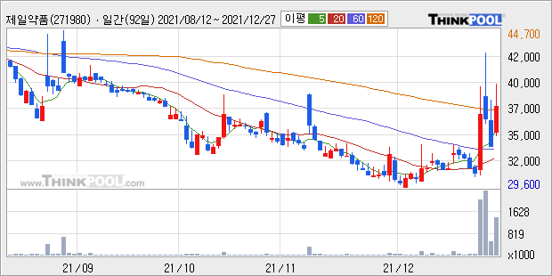 제일약품의 2020년 매출액은 전년대비 3.1% 늘어난 6922억원이고, 영업이익 또한 전년대비 3,876.3% 늘어난 151억원을 기록했다. 이 회사의 매출액 증감률과 영업이익 증감률은 각각 코스피 하위 1%, 하위 1%에 해당된다.
