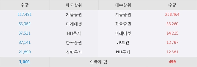 거래원 동향은 JP모건, 미래에셋, NH투자 등이 매수 상위 목록에 나타나고 있다.