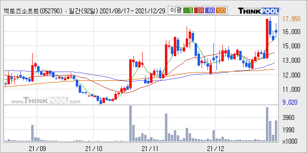 액토즈소프트는 2020년 매출액 475억원과 영업이익 178억원을 기록했다. 전년대비 매출은 -24.1%, 영업이익은 -30.4% 각각 하락했다. 이 회사의 매출액 증감률과 영업이익 증감률은 각각 코스닥 하위 16%, 하위 37%에 해당된다.