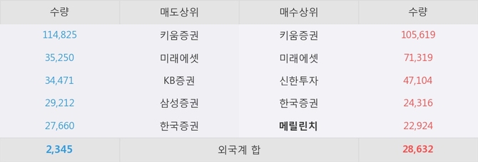 거래원 동향은 메릴린치, 미래에셋이 매수 상위 목록에 나타나고 있다.