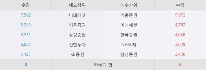 거래원 동향은 미래에셋, NH투자, 삼성증권 등이 매수 상위 목록에 나타나고 있다.