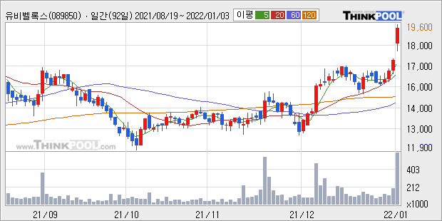유비벨록스의 2020년 매출액은 전년대비 2.4% 늘어난 2860억원이고, 영업이익 또한 전년대비 120.2% 늘어난 171억원을 기록했다. 이 회사의 매출액 증감률과 영업이익 증감률은 각각 코스닥 상위 46%, 상위 15%에 해당된다.