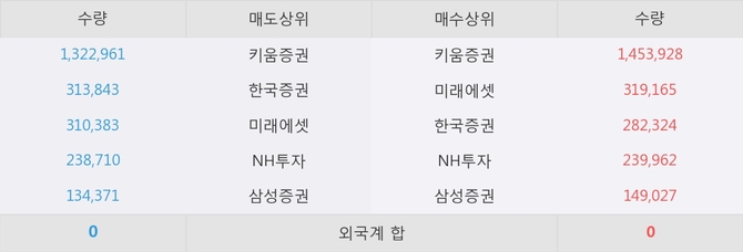 거래원 동향은 미래에셋, NH투자, 삼성증권 등이 매수 상위 목록에 나타나고 있다.