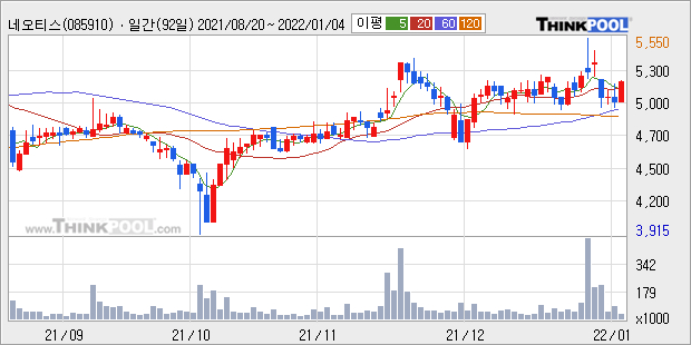 네오티스의 2020년 매출액은 380억으로 전년대비 -10.5% 하락했고, 영업이익은 37억으로 전년대비 11.3% 상승했다. 이 회사의 매출액 증감률과 영업이익 증감률은 각각 코스닥 하위 31%, 상위 46%에 해당된다.