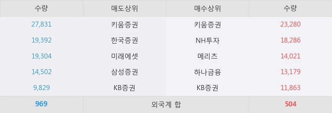 거래원 동향은 NH투자, 메리츠, 하나금융 등이 매수 상위 목록에 나타나고 있다.