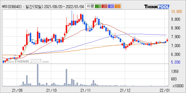 HRS은 2020년 매출액 674억원과 영업이익 103억원을 기록했다. 전년대비 매출은 1.0%, 영업이익은 551.9% 각각 상승했다. 이 회사의 매출액 증감률과 영업이익 증감률은 각각 코스닥 상위 49%, 상위 4%에 해당된다.