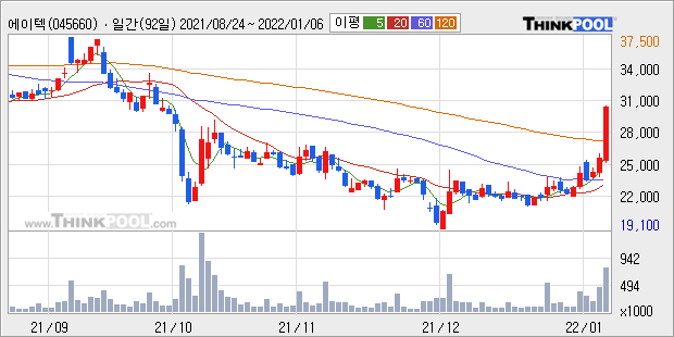 에이텍은 2020년 매출액 982억원과 영업이익 63억원을 기록했다. 전년대비 매출은 -1.1% 하락했고, 영업이익은 45.5% 상승했다. 이 회사의 매출액 증감률과 영업이익 증감률은 각각 코스닥 하위 47%, 상위 32%에 해당된다.