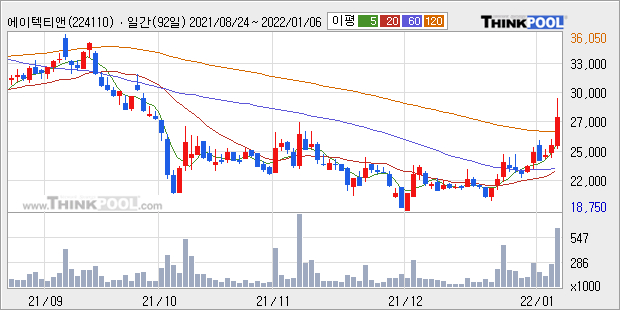 에이텍티앤의 2020년 매출액은 전년대비 -7.5% 줄어든 1184억원이고, 영업이익 역시 전년대비 -7.8% 줄어든 48억원을 기록했다. 이 회사의 매출액 증감률과 영업이익 증감률은 각각 코스닥 하위 35%, 하위 46%에 해당된다.