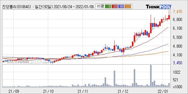 진양폴리의 2020년 매출액은 전년대비 11.1% 늘어난 355억원이고, 영업이익은 전년대비 -28.7% 줄어든 23억원을 기록했다. 이 회사의 매출액 증감률과 영업이익 증감률은 각각 코스피 상위 25%, 하위 32%에 해당된다.
