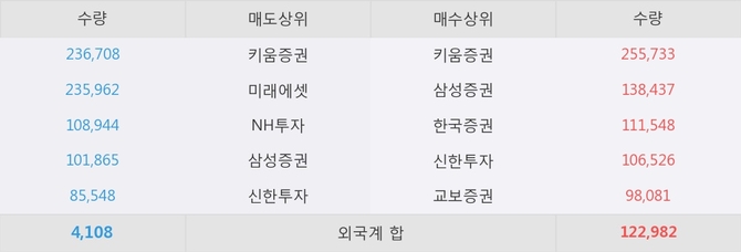 이 시각 주요 거래원은 삼성증권, 키움증권, 한국증권 등이 매수 상위 창구에 자리하고 있다.