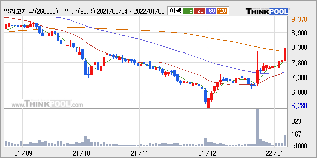 알리코제약은 2020년 매출액 1248억원과 영업이익 106억원을 기록했다. 전년대비 매출은 7.8% 상승했고, 영업이익은 -15.5% 하락했다. 이 회사의 매출액 증감률과 영업이익 증감률은 각각 코스닥 상위 38%, 하위 42%에 해당된다.