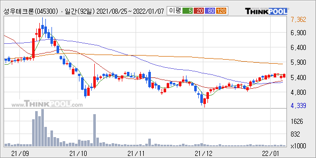 일봉 차트의 모습은 현재 단기·중기 이평선이 정배열 상태로 전형적인 상승세를 보이고 있다. 이 종목의 차트에서 최근에 최근 60일 매물대 돌파, 최근 5일 매물대 돌파, 삼선전환도(양전환) 등을 확인할 수 있다