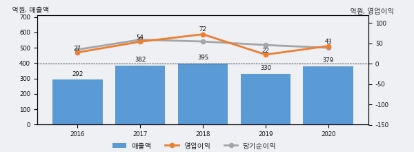 성우테크론은 2020년 매출액 379억원과 영업이익 43억원을 기록했다. 전년대비 매출은 15.0%, 영업이익은 95.9% 각각 상승했다. 이 회사의 매출액 증감률과 영업이익 증감률은 각각 코스닥 상위 27%, 상위 19%에 해당된다.