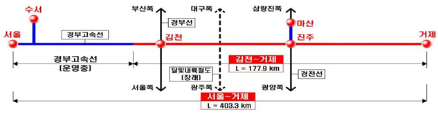 이를 통해 고속철도 서비스의 소외지역이었던 영남 서부지역이 수도권에서 KTX로 2시간 50분대에 연결이 가능해진다.
