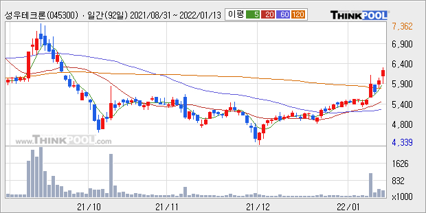 차트상 주가의 흐름은 현재 단기·중기 이평선이 정배열 상태로 전형적인 상승세를 보이고 있다.