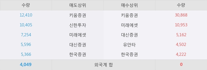 이 시각 주요 거래원은 미래에셋, 키움증권, 대신증권 등이 매수 상위 창구에 자리하고 있다.
