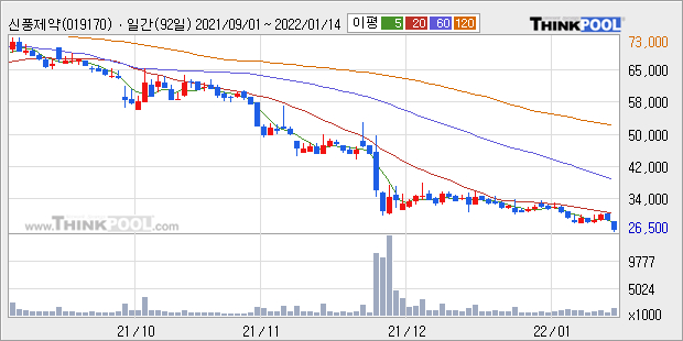 신풍제약의 2020년 매출액은 1978억으로 전년대비 4.2% 상승했고, 영업이익 또한 78억으로 전년대비 40.2% 상승했다. 이 회사의 매출액 증감률과 영업이익 증감률은 각각 코스피 상위 30%, 상위 29%에 해당된다.