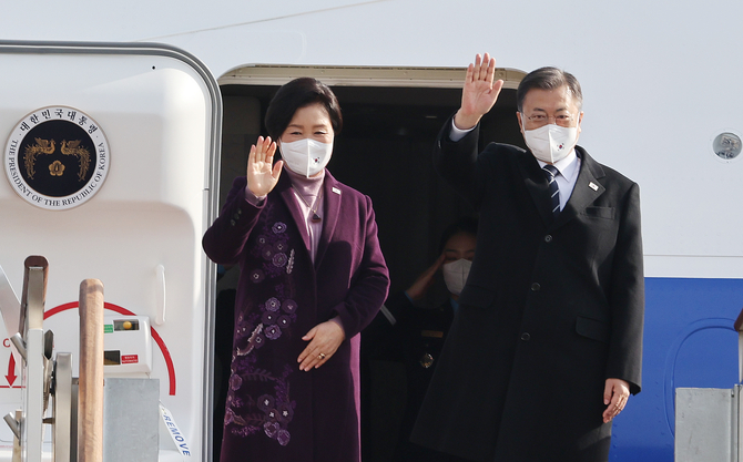 문 대통령은 출국 직전 공항에 환송나온 유영민 비서실장에게 "오미크론 변이 확산이 우려되는 만큼 국무총리 중심으로 방역상황을 잘 챙기라"고 지시하고, 국민들께서도 방역에 적극 협조해주시기 바란다는 입장을 밝혔다고 박경미 청와대 대변인이 서면브리핑을 통해 전했다.