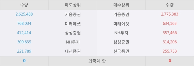 거래원 동향은 미래에셋, 삼성증권, NH투자 등이 매도 상위 목록에 나타나고 있다.