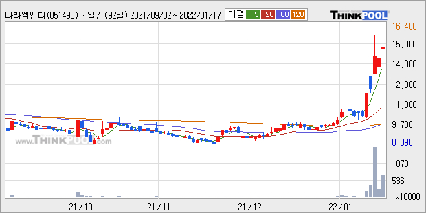 나라엠앤디의 2020년 매출액은 전년대비 14.0% 늘어난 1778억원이고, 영업이익은 전년대비 -21.7% 줄어든 17억원을 기록했다. 이 회사의 매출액 증감률과 영업이익 증감률은 각각 코스닥 상위 29%, 하위 41%에 해당된다.