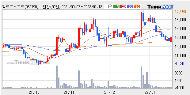 액토즈소프트의 2020년 매출액은 475억으로 전년대비 -24.1% 하락했고, 영업이익 역시 178억으로 전년대비 -30.4% 하락했다. 이 회사의 매출액 증감률과 영업이익 증감률은 각각 코스닥 하위 16%, 하위 37%에 해당된다.
