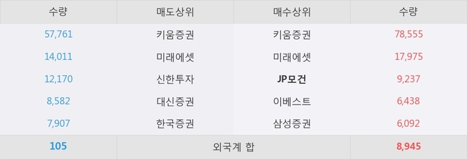 거래원 동향은 JP모건, 미래에셋, 삼성증권 등이 매수 상위 목록에 나타나고 있다.