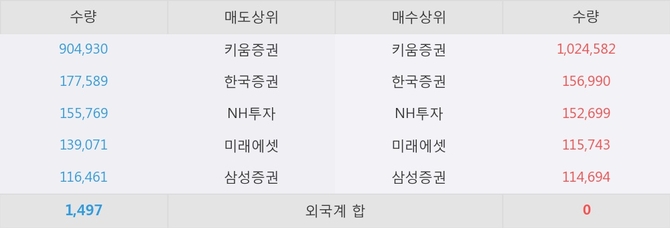 거래원 동향은 NH투자, 미래에셋, 삼성증권 등이 매수 상위 목록에 나타나고 있다.