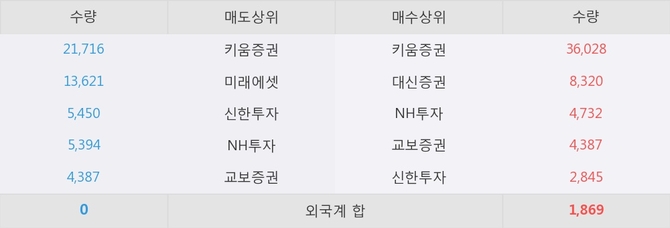 이 시각 주요 거래원은 NH투자, 키움증권, 대신증권 등이 매수 상위 창구에 자리하고 있다.