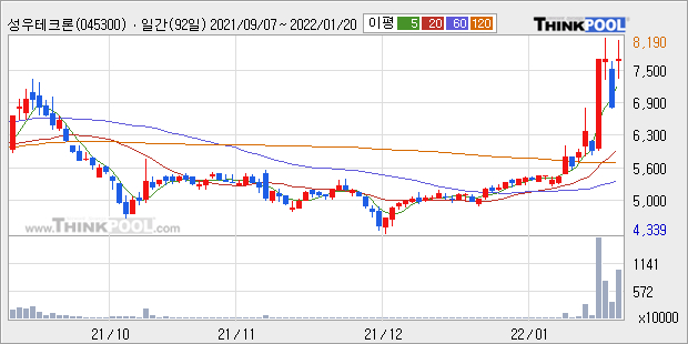 차트상 주가의 흐름은 현재 단기·중기 이평선이 정배열 상태로 전형적인 상승세를 보이고 있다. 최근 이 종목의 차트에서 주가 5MA 상향돌파 등의 특이사항이 발생했다.