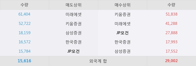 거래원 동향은 JP모건, 미래에셋, 삼성증권 등이 매수 상위 목록에 나타나고 있다. 한편, 매도 창구 상위에는 JP모건이 눈에 띄고 있다.