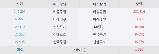 이 시각 주요 거래원은 미래에셋, 키움증권, KB증권 등이 매수 상위 창구에 자리하고 있다.