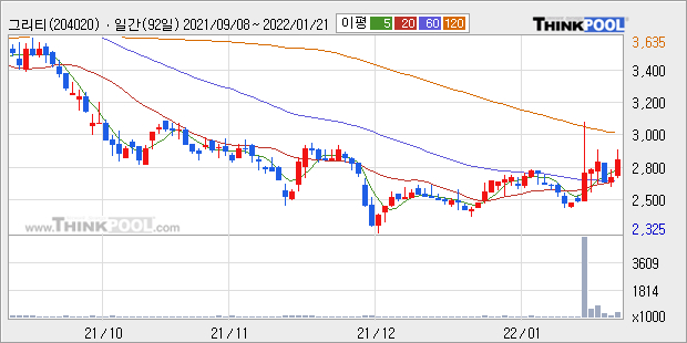 그리티는 2020년 매출액 1235억원과 영업이익 22억원을 기록했다. 전년대비 매출은 0.3% 상승했고, 영업이익은 -26.1% 하락했다. 이 회사의 매출액 증감률과 영업이익 증감률은 각각 코스닥 상위 50%, 하위 39%에 해당된다.