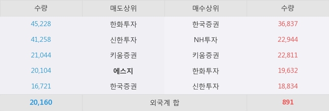 에스지가 매도상위 창구 4위를 기록중이고, 그 외에 한화투자, 신한투자 등이 매도 창구 상위에 위치하고 있다.